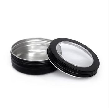 กล่องดีบุกขนาดเล็กทำจากโลหะสีดำขนาดเล็กพร้อมฝาเกลียวทำจากอลูมิเนียมกระป๋องครีมลูกอมทรงกลมขนาด2ออนซ์ออกแบบได้ตามต้องการ